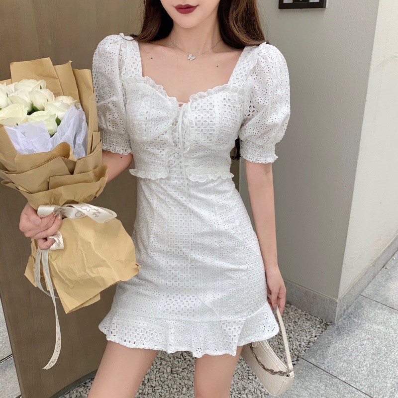 Po 1059 Floral Lace Embroidery Pattern Stretchable Tie Waist Button Short Sleeve Dress Summer Ulzzang White Women S Fashion Clothes Dresses Skirts On Carousell - Pinterest ( just search ulzzang cute dress) !